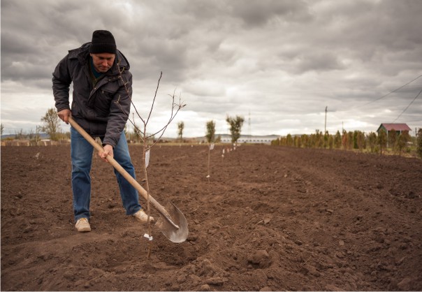 Закрепление саженца.
