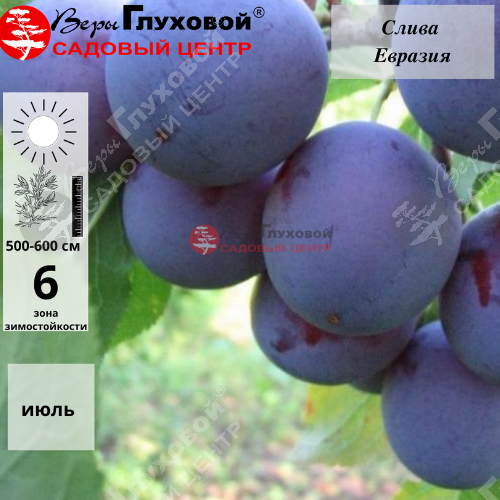 Слива «Евразия» - сложный гибрид, выведенный селекционерами А.Н.Веньяминовым и А.Г.Туровцевым. В Госреестре и справочниках сортов её можно встретить под названием «Евразия 21».